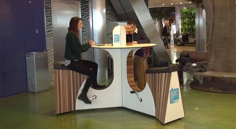 Smartphone-charging exercise desks arrive at Amsterdam Airport