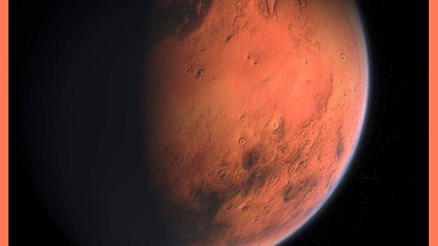 A rocky red landscape in China serves as a Mars simulation base